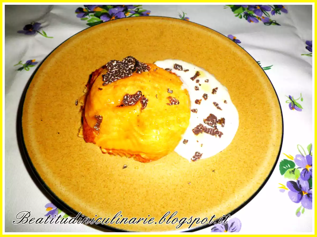 Sformatini di zucca su fonduta di pecorino al tartufo nero