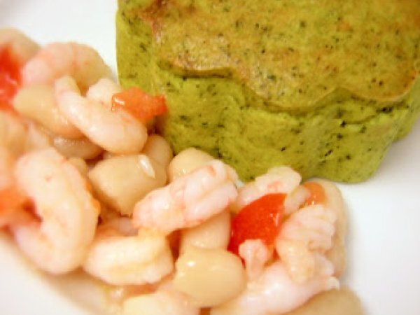 Sformatino di broccoli con insalata tiepida di gamberetti