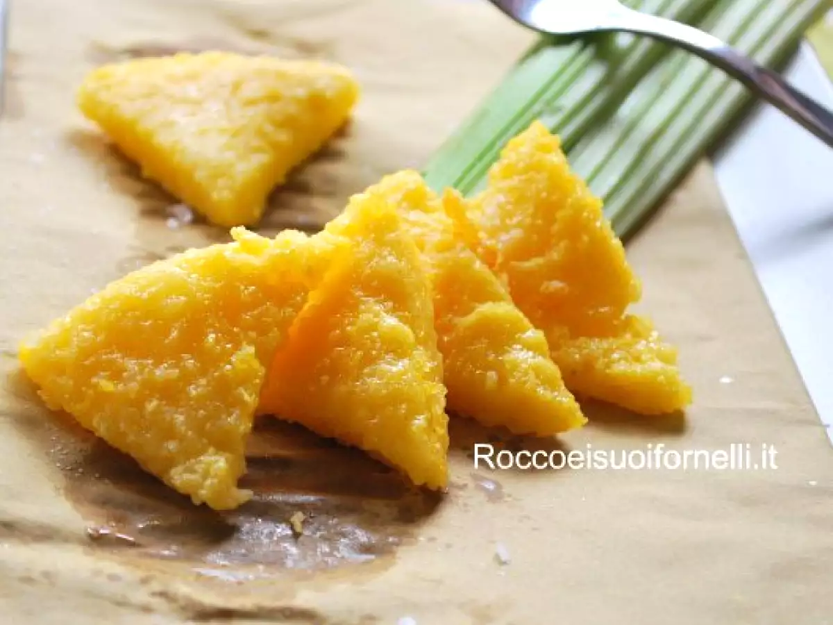 - Lasciarla raffreddare e tagliarla a quadrati o a triangoli e friggerli in una padella con abbondante olio bollente.
