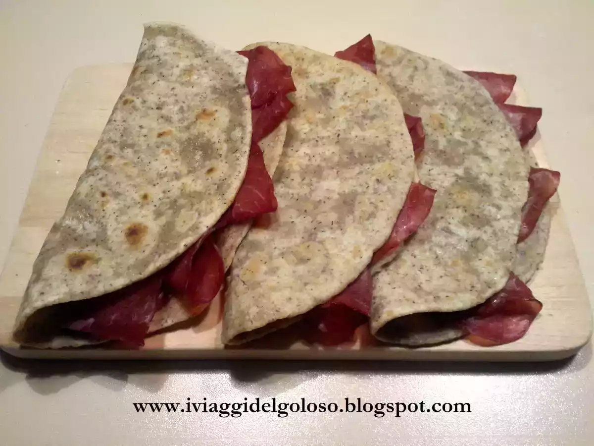 Taco piado saraceni con bresaola e parmigiano Antipastomedia15 min398 Kcal Invia questa ricetta ad un amico Stampa la ricetta Contatta l'autore della Ricetta Pubblica la foto di questa ricetta Ingredienti 4 220 gr. di farina 00 100 gr. di farina di grano saraceno 140 ml di acqua sale 200 gr. di bresaola formaggio parmigiano in scaglie Costo stimato: 10.84Euros€ (2.71€/Porzioni)