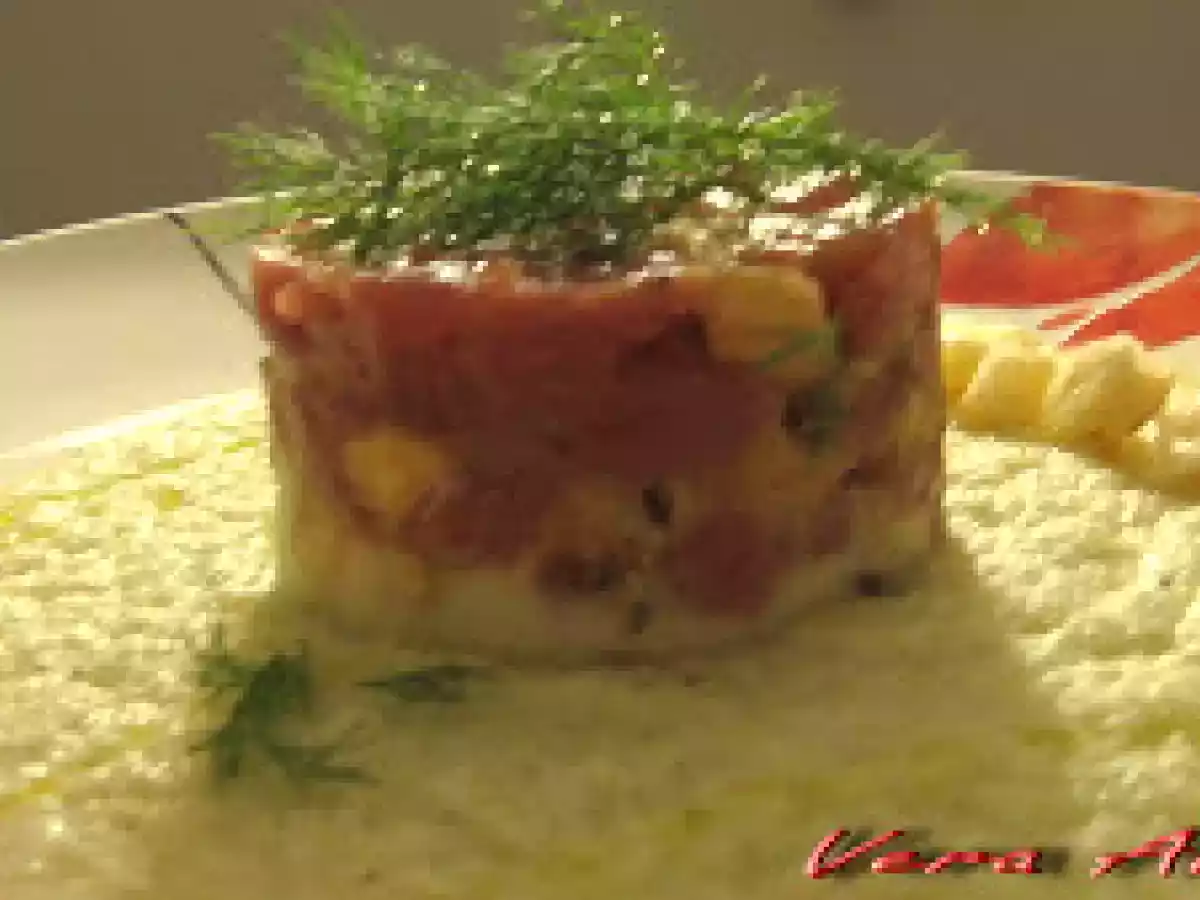Tartare di tonno e avocado con crostini di pane e crema di finocchi