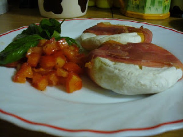- Avvolgere le fette di prosciutto crudo attorno ai tomini
