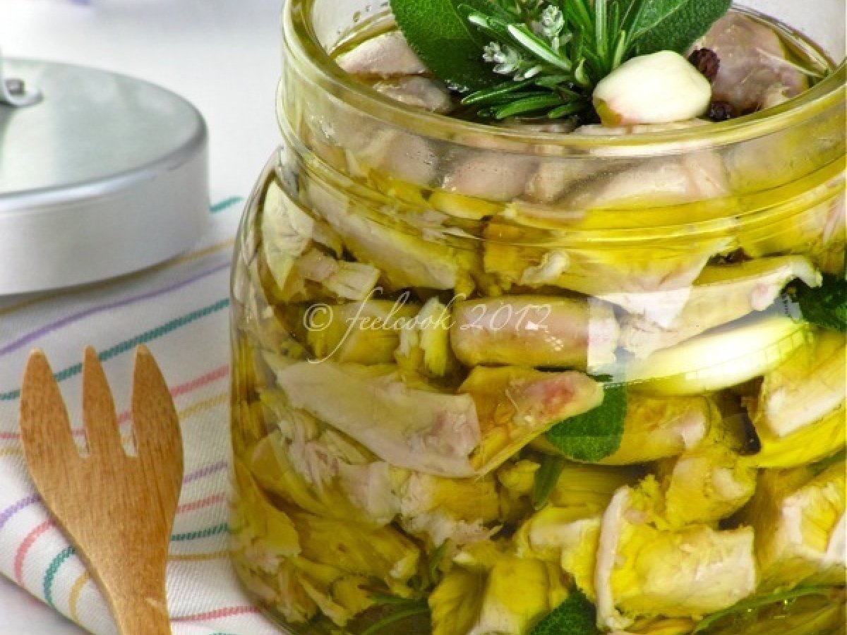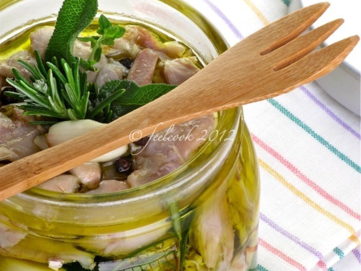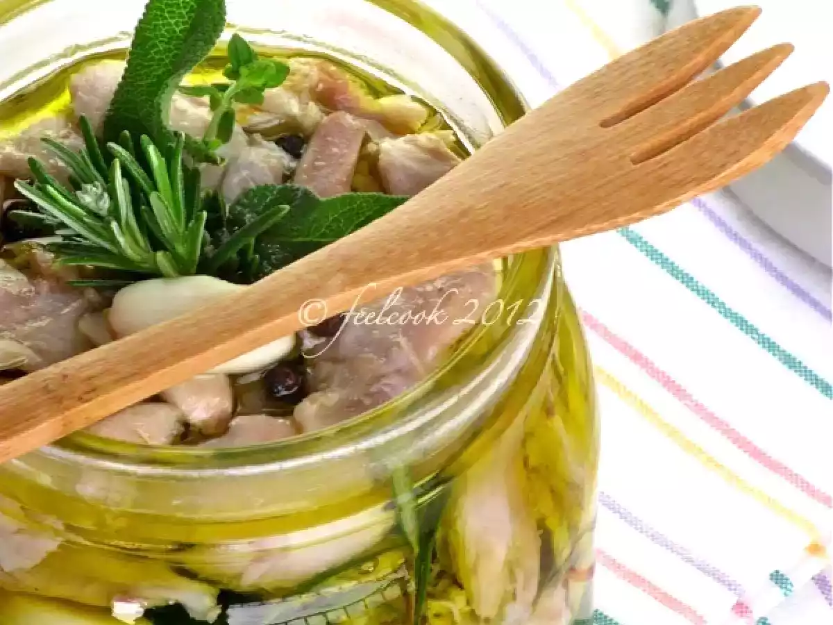 E' un antica ricetta piemontese, e una volta messo sott'olio il coniglio assomiglia al tonno.