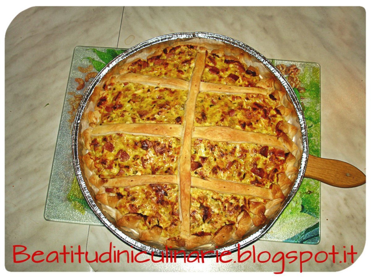 Una torta salata come antipasto o secondo alternativo! Si possono fare in mille modi, questa contiene i porri addolciti in cottura e golosi wurstel!