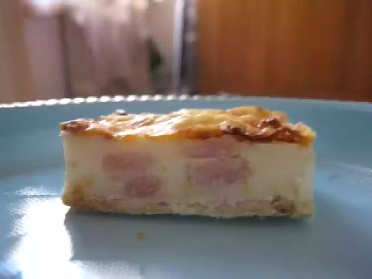 Torta salata formaggio e prosciutto cotto PrecedenteProssimo Antipastofacile1 ora Invia questa ricetta ad un amico Stampa la ricetta Contatta l'autore della Ricetta Pubblica la foto di questa ricetta Ingredienti 6 Per il guscio di pasta: 200 g di farina '00' 90 g di burro morbido a pezzetti - un uovo 5 g di sale 20 g di acqua Per il ripieno: 500 ml di latte 60 g di farina '00' 60 g di burro un pizzico di sale pepe noce moscata 150 g di prosciutto cotto in sole 2 fette 180 g di emmentaler