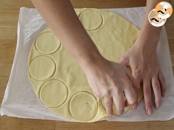 Dal secondo rotolo di pasta sfoglia ricavate altri 12 cerchi (più piccoli di quelli fatti in precedenza)