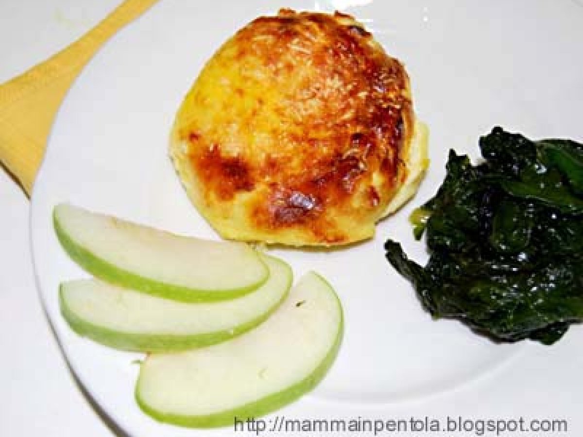 Tortino al formaggio con cuore di mela PrecedenteProssimo Antipastofacile47 min Invia questa ricetta ad un amico Stampa la ricetta Contatta l'autore della Ricetta Pubblica la foto di questa ricetta Un antipasto dal gusto particolare. Scoprite come si prepara! Ingredienti 6 120 g di farina 100 g di burro 2,5 dl di latte 5 uova 250 g di pecorino 3 mele renette sale
