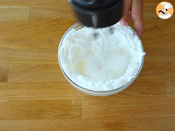 Su una placca da forno formate 2 cumuletti con il composto a base di albumi. Poi fate un buco nel mezzo