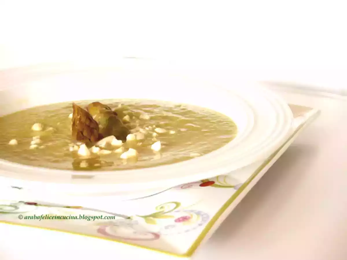 Vellutata di asparagi, mela verde e mandorle Antipastofacile29 min Invia questa ricetta ad un amico Stampa la ricetta Contatta l'autore della Ricetta Pubblica la foto di questa ricetta Ingredienti 4 un mazzo di asparagi, circa mezzo kg mezzo porro una mela verde Granny Smith brodo vegetale, o acqua sale qualche cucchiaio di ricotta fresca un cucchiaio di olio extravergine di oliva mandorle non tostate, grossolanamente tritate