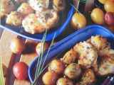 Ingredienti: 700 g di coda di rospo 350 g di patate 400 g di zucca a fettine 80 g di burro 1 rametto di salvia 4 rametti di timo 600 g di castagne già lessate...