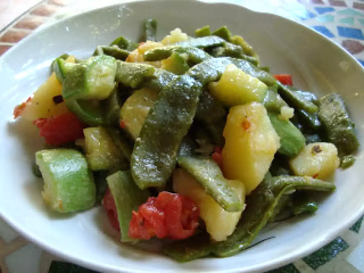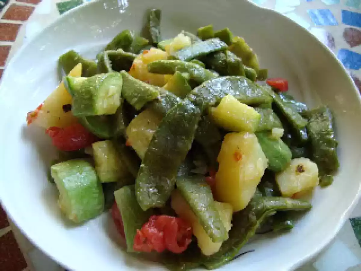 Fagiolini, patate e zucchine PrecedenteProssimo Contornifacile30 min330 Kcal Invia questa ricetta ad un amico Stampa la ricetta Contatta l'autore della Ricetta Pubblica la foto di questa ricetta Un ottimo e gustoso contorno. Facilissimo da preparare! Ingredienti 1 fagiolini zucchine pomodorini pachino patate sale aglio olio extravergine di oliva Costo stimato: 1.27Euros€ (1.27€/Porzioni)