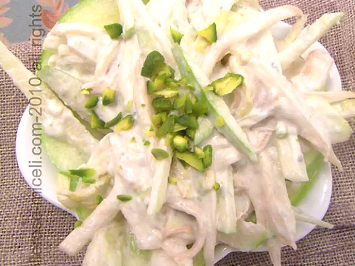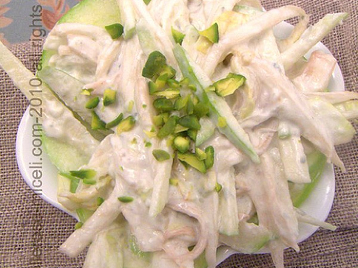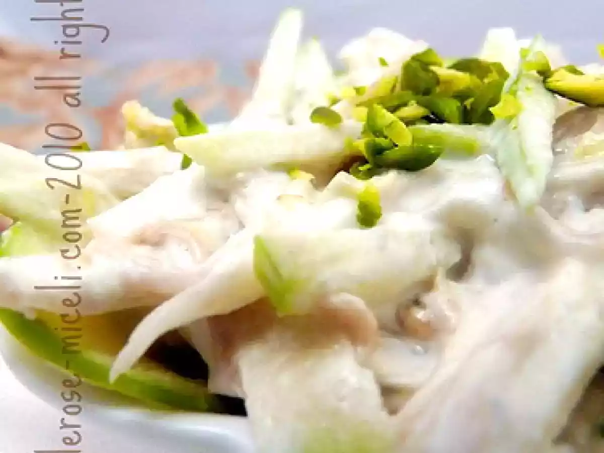 Indivia belga, mela verde e salsa al roquefort con pistacchi vota adesso PrecedenteProssimo Contornifacile30 min Invia questa ricetta ad un amico Stampa la ricetta Contatta l'autore della Ricetta Pubblica la foto di questa ricetta Ingredienti 4 2 indivie 2 mele granny smith 100 g di roquefort o gorgonzola 4 cucchiai di panna fresca 10 pistacchi sgusciati e tagliati grossolanamente mezzo limone
