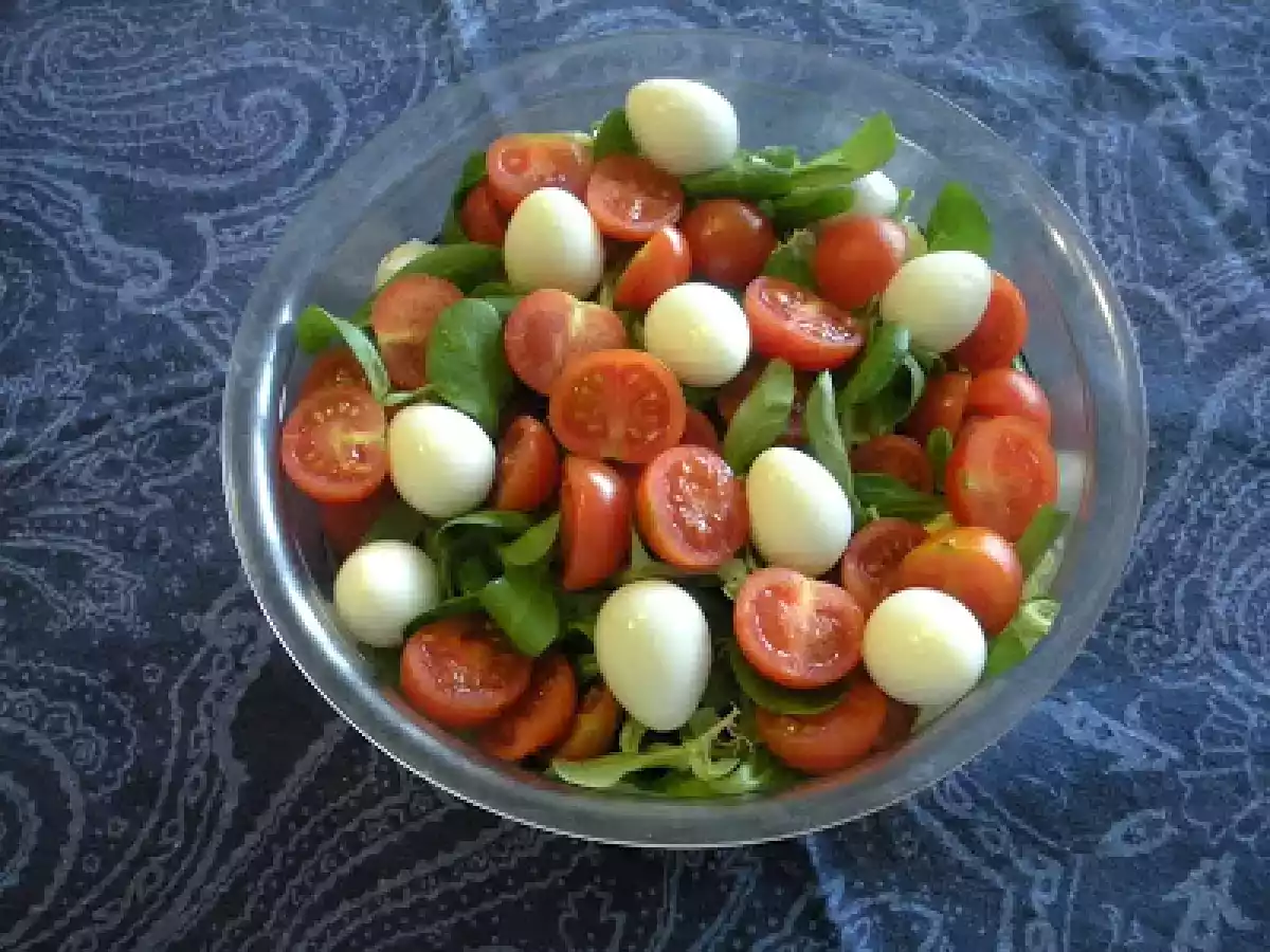 Insalata italiana Contornifacile10 min Invia questa ricetta ad un amico Stampa la ricetta Contatta l'autore della Ricetta Pubblica la foto di questa ricetta Ingredienti 4 Valeriana pomodorini cigliegini uova di quaglia