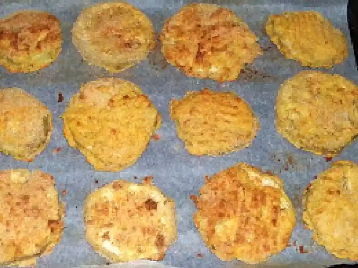 Melanzane impanate light Contornifacile50 min386 Kcal Invia questa ricetta ad un amico Stampa la ricetta Contatta l'autore della Ricetta Pubblica la foto di questa ricetta Ingredienti 2 una melanzana 100 g pangrattato 25 g parmigiano grattugiato un uovo un cucchiaio di latte un filo d'olio extravergine di oliva Costo stimato: 1.39Euros€ (0.7€/Porzioni)
