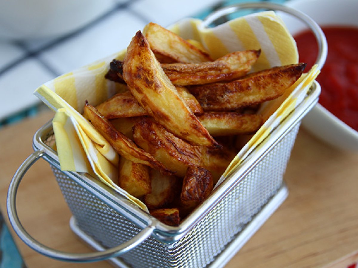 Volete provare le patatine fritte in versione light? Ecco la ricetta che vi permetterà di ottenere delle patatine croccanti all'esterno e morbide all'interno. Utilizzatele per accompagnare i vostri secondi, i bambini le adoreranno