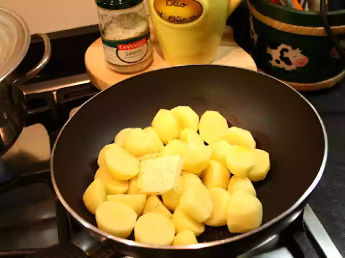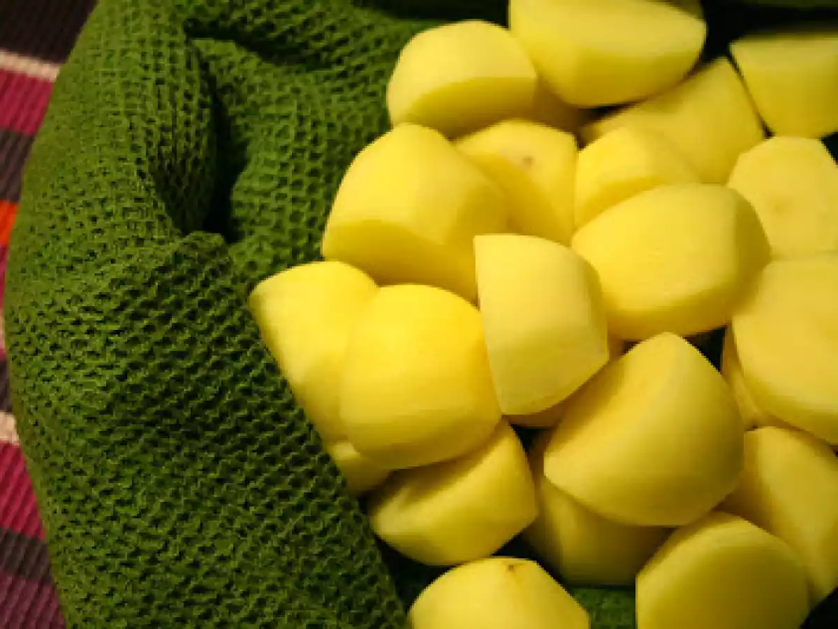 Patate croccanti in padella PrecedenteProssimo Contornifacile45 min39 Kcal Invia questa ricetta ad un amico Stampa la ricetta Contatta l'autore della Ricetta Pubblica la foto di questa ricetta Ingredienti 6 Patata Sale e pepe olio Costo stimato: 0.35Euros€ (0.06€/Porzioni)