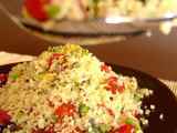 Ingredienti: 100 gr di semola per cous cous (1 bicchiere piccolo) 110 ml acqua bollente (1 bicchiere piccolo) 1 pizzico di sale 1 cucchiaio di olio d'oliva