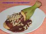 Ingredienti: 4 bananitos sode e mature 2 cucchiai di crema di nocciole 1/2 cucchiaio di fecola di patata 1 bicchiere di latte 30 g di granella di nocciola