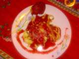 Fagottini di crepe ai formaggi e indivia con salsa di pere alle erbe