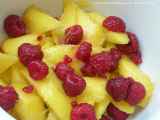 Ingredienti: 100 g mango frullato 2 cucchiai di zucchero limone q.b. 5 g cioccolato fondente tritato o a scaglie 20 g ricotta vaccina setacciata 20 g yogurt...