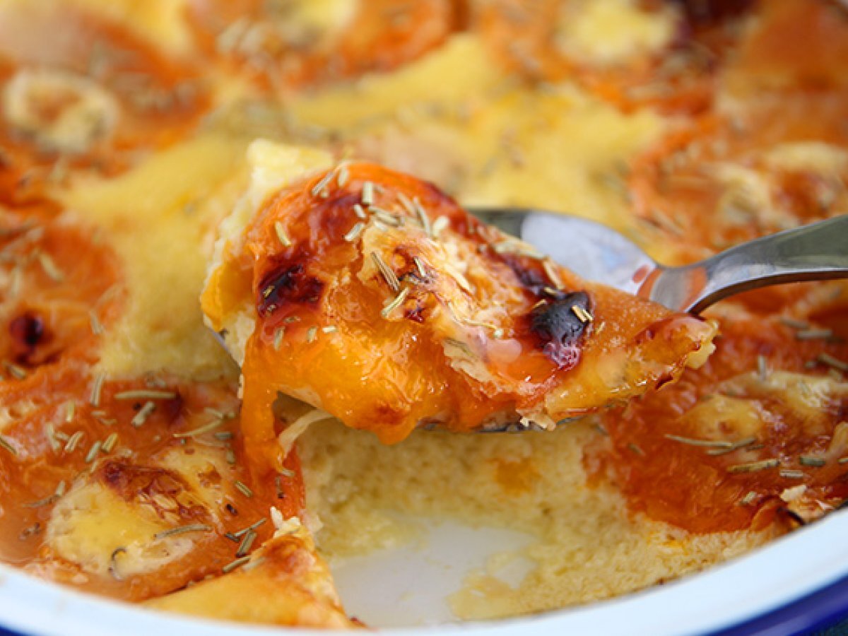 Versate il composto sulle albicocche e spolverate con il rosmarino essiccato