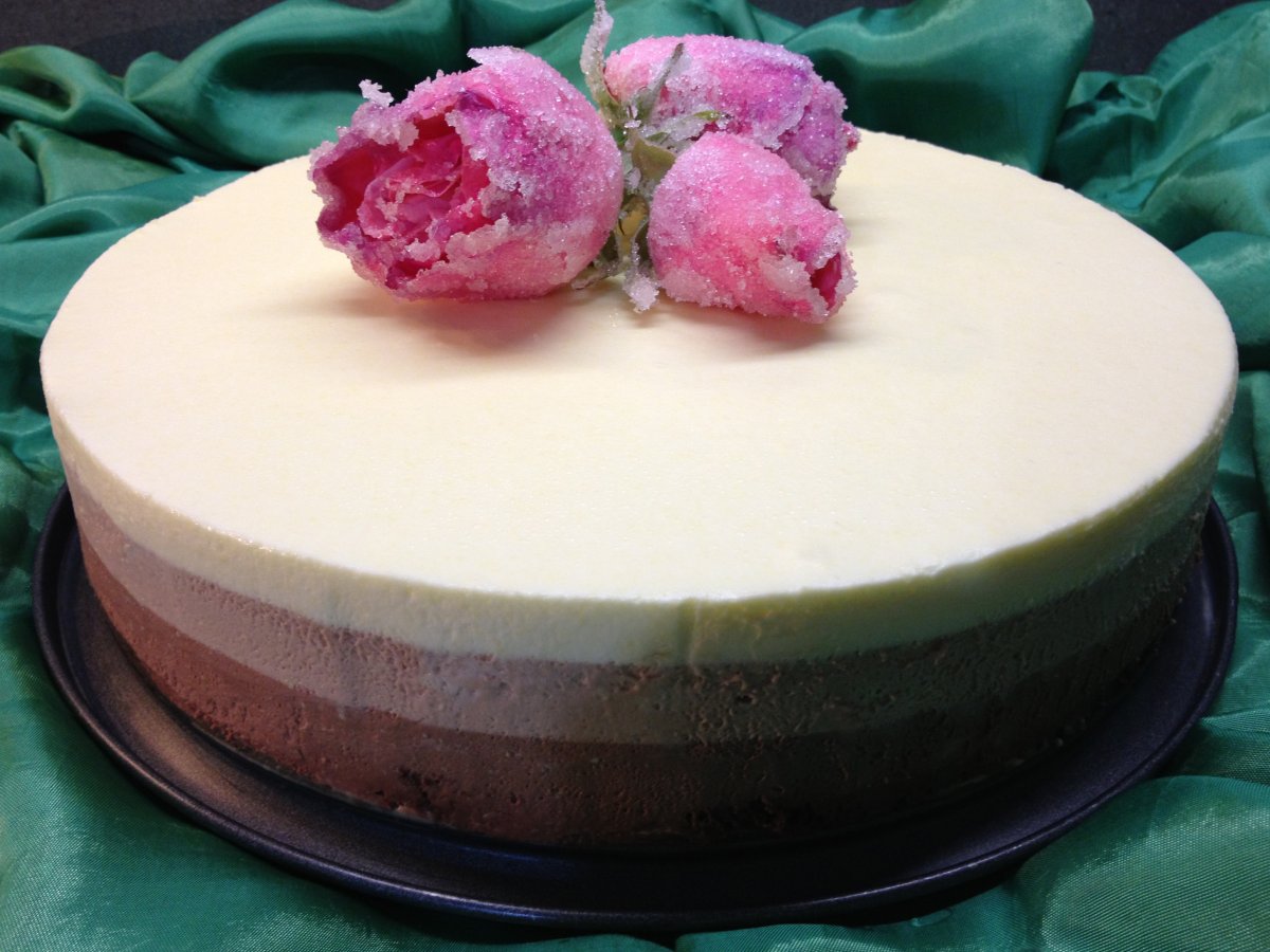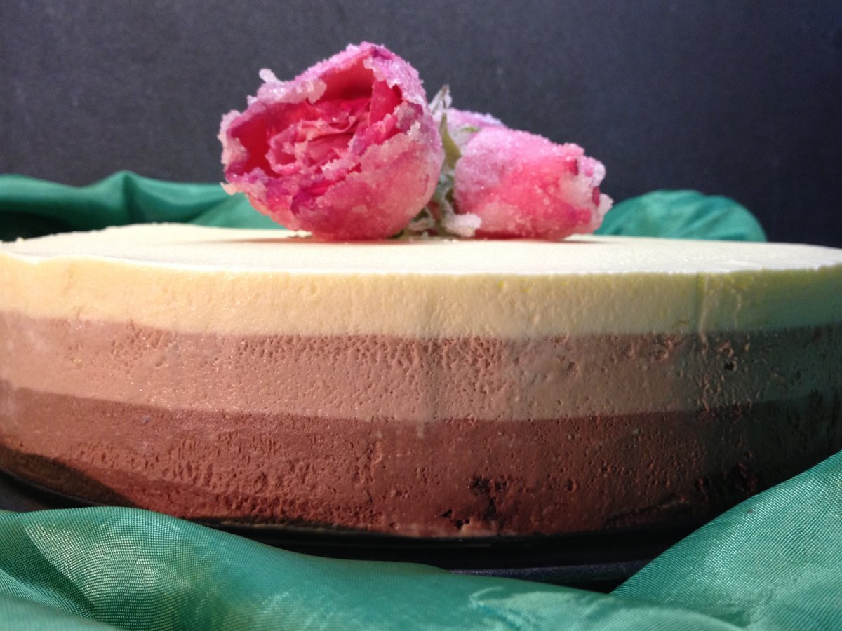 Bavarese ai 3 cioccolati di luca montersino con le rose brinate