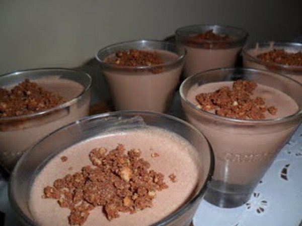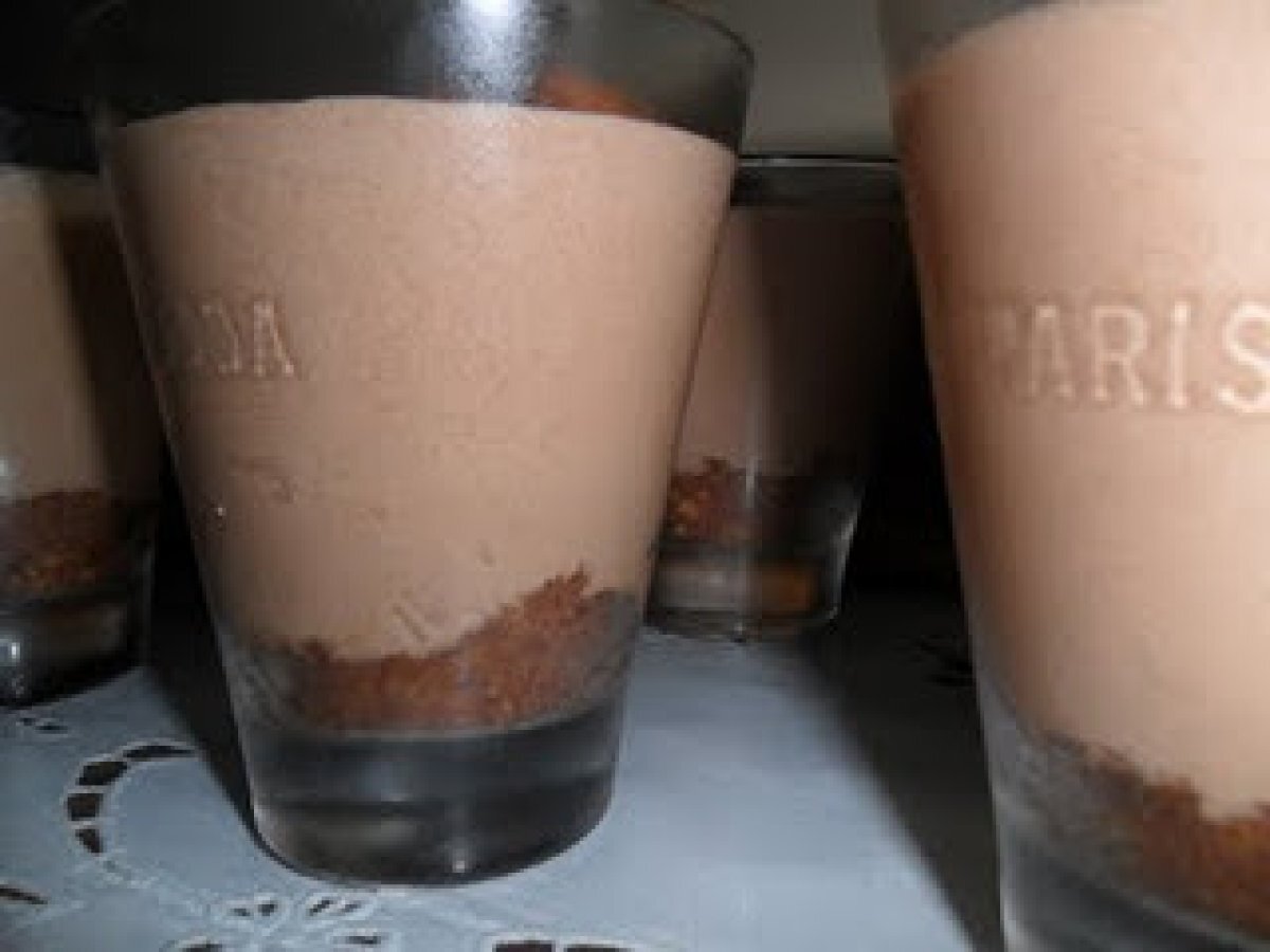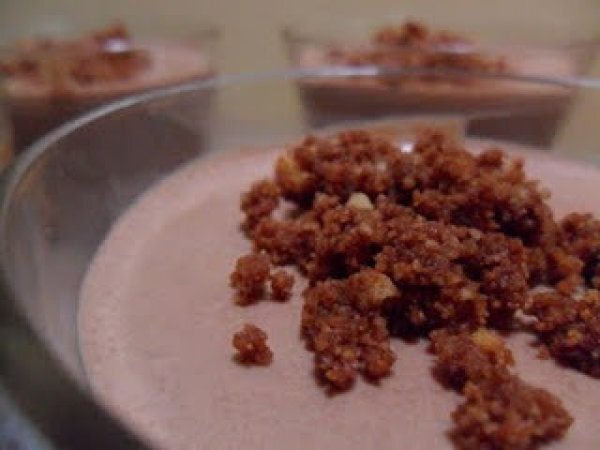 Bavarese al cioccolato fondente con letto di biscotto croccante.