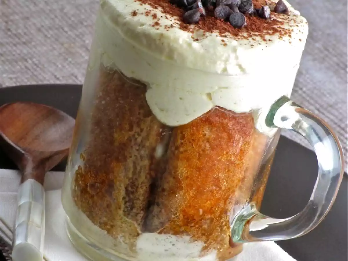 Utilizzando un sac à poche, riempite l'interno con la crema al mascarpone alternandola ad altri pezzetti di savoiardi inzuppati. Terminate con la crema fino all'orlo dei bicchieri, spolverate con cacao amaro e decorate con gocce di cioccolato fondente. - Naturalmente potete prepararlo come un classico tiramisù disponendo i savoiardi a strati in una pirofila.