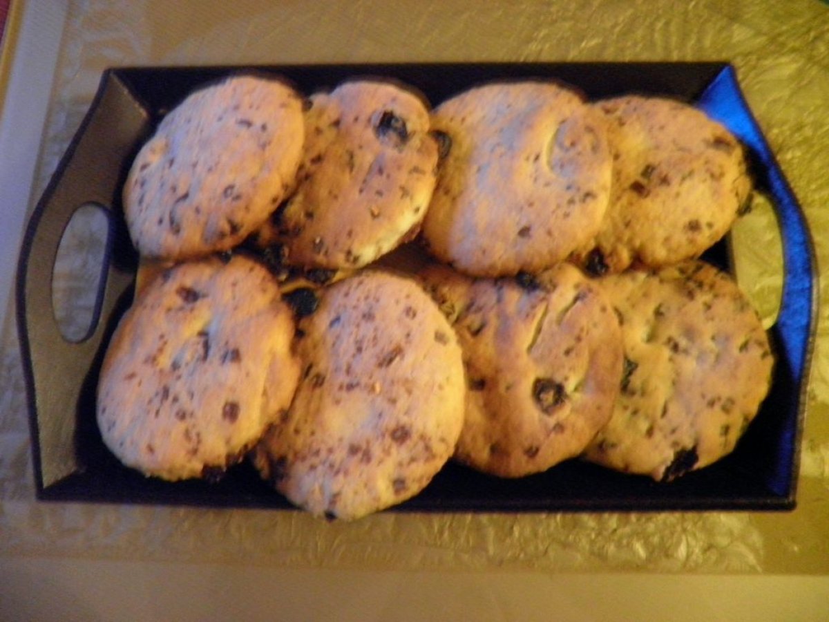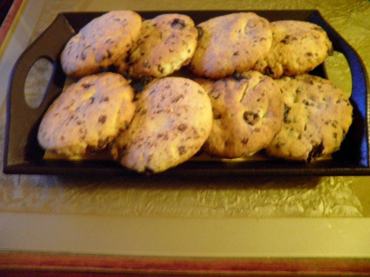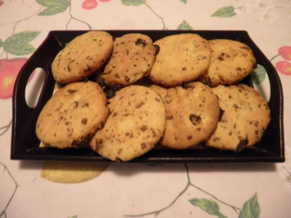 Ciao a tutti, oggi vi propongo dei biscotti deliziosi, fatti con uvetta e gocce di cioccolato, ottimi per la colazione e merenda.