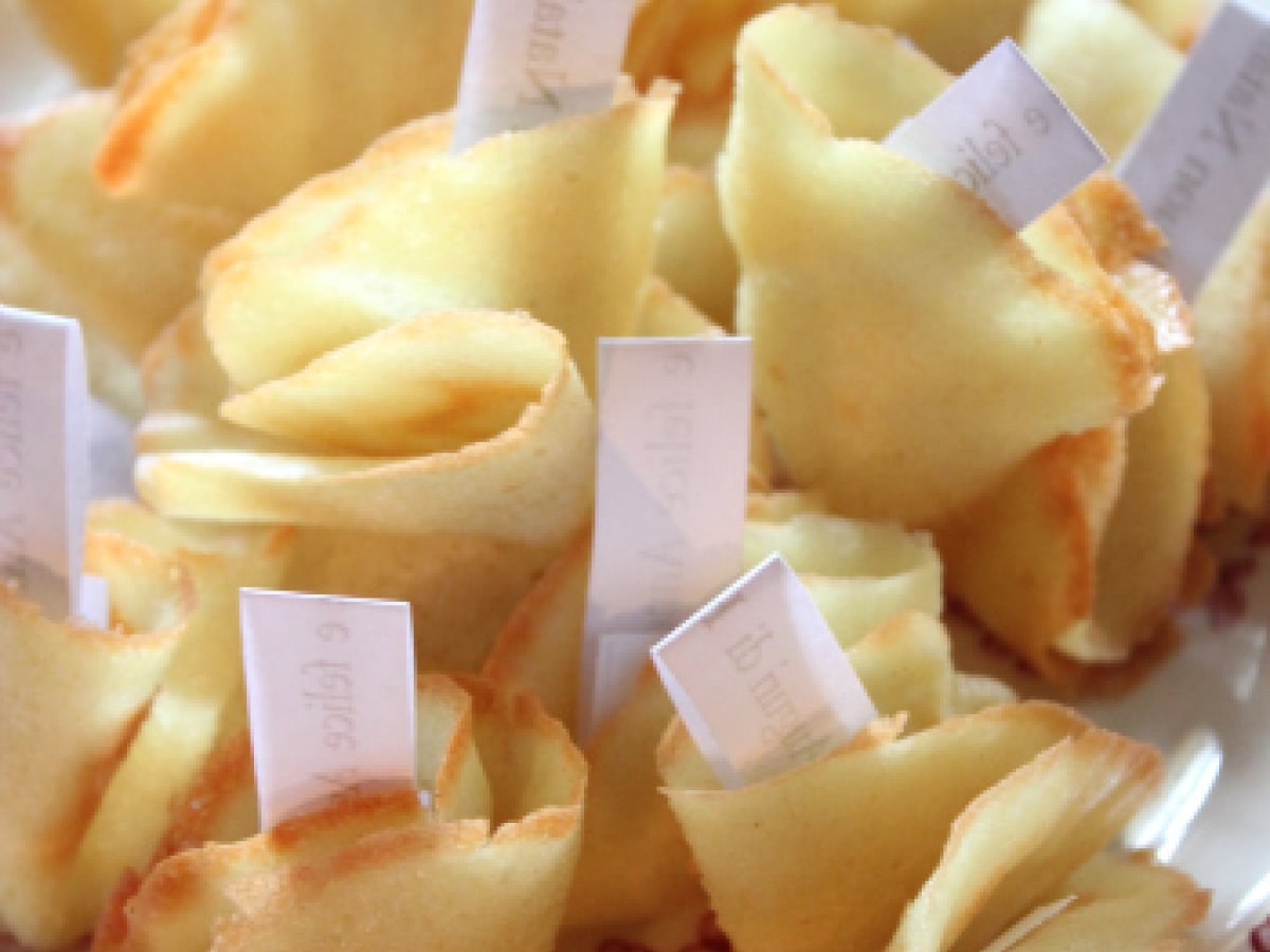 Biscotti della fortuna Dessertmedia45 min Invia questa ricetta ad un amico Stampa la ricetta Contatta l'autore della Ricetta Pubblica la foto di questa ricetta Ingredienti 6 farina 00: 60 gr zucchero a velo: 60 gr burro: 45 gr albumi: 3 essenza di vaniglia: 1 cucchiaino