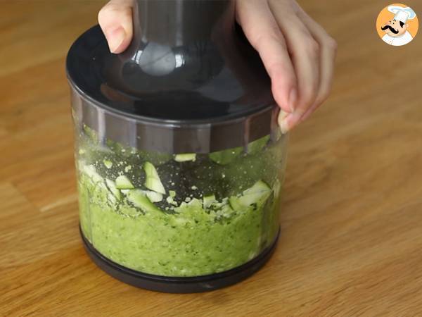 Lavate le zucchine e tritatele con i frullatore (se non l'avete, grattugiatele). Ora aggiungetele alla preparazione precedente.