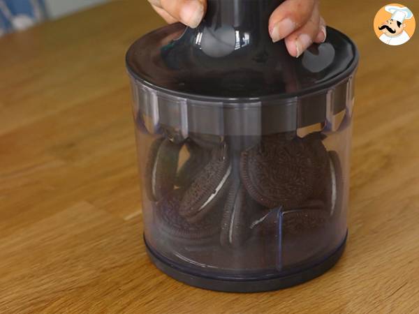 Per finire tritate gli Oreo e disponete la polvere ricavata sulla superficie del Brownie (vi servirà per creare un effetto terra)
