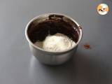 Aggiungete il cacao in polvere, le uova e mescolate. Quindi incorporate anche la farina alla preparazione