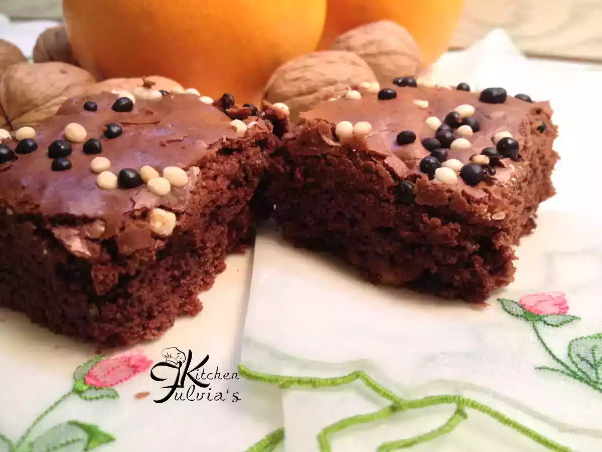 Brownies con cioccolato fondente, noci e scorza d’arancia