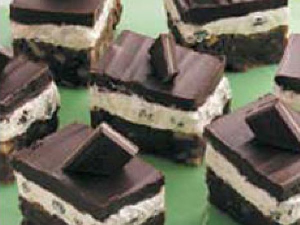 Brownies irlandesi alla menta vota adesso Dessertfacile1 h 40 m Invia questa ricetta ad un amico Stampa la ricetta Contatta l'autore della Ricetta Pubblica la foto di questa ricetta Ingredienti 4 225 g di burro a cubetti 113 g di cioccolato fondente a pezzetti 4 uova 400 g di zucchero 2 cucchiaini di estratto di vaniglia 195 g di farina 170 g di cioccolato extra fondente a scaglie 50 g di noci Per la crema: 113 g di cioccolato bianco a pezzetti 63 g di panna da caffè 250 di panna fresca montata 15 cioccolatini tipo After Eight a pezzettini Per la glassa: 340 g di cioccolato fondente a pezzetti 250 di panna fresca montata 28 g di burro