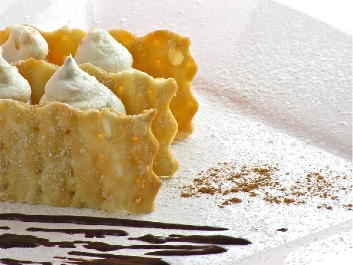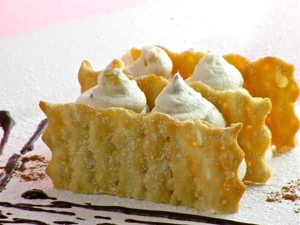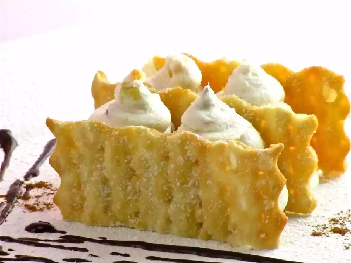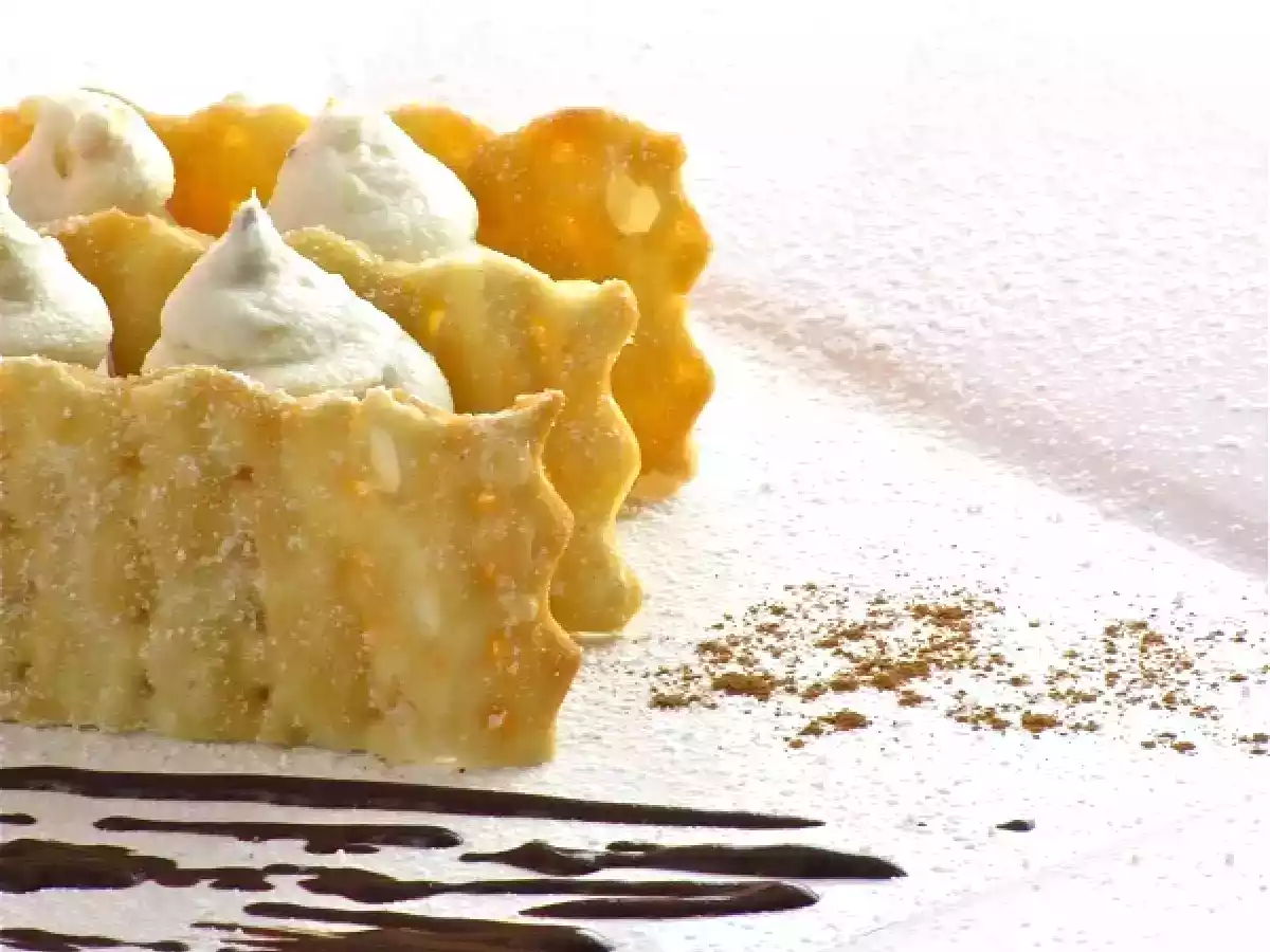 Bugie con crema alla ricotta, salsa di cioccolato e cannella