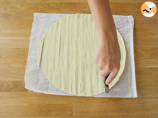 Tagliate la pasta sfoglia a strisce da 1 cm di larghezza (se volete anche un po' più grandi)
