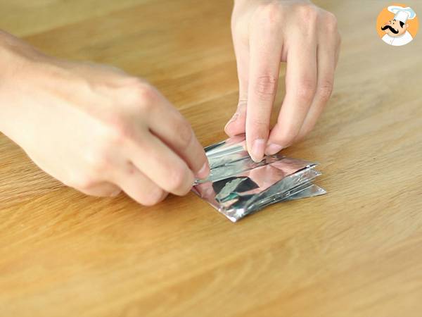 Piegate e arrotolate un pezzo di carta alluminio cercando di formare un cilindro