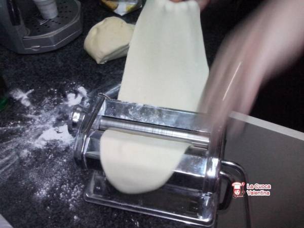Dividere l’impasto in più parti, ed iniziare a tirare la sfoglia con la macchinetta della pasta. Iniziare dal numero 1 fino ed arrivare al numero 4.