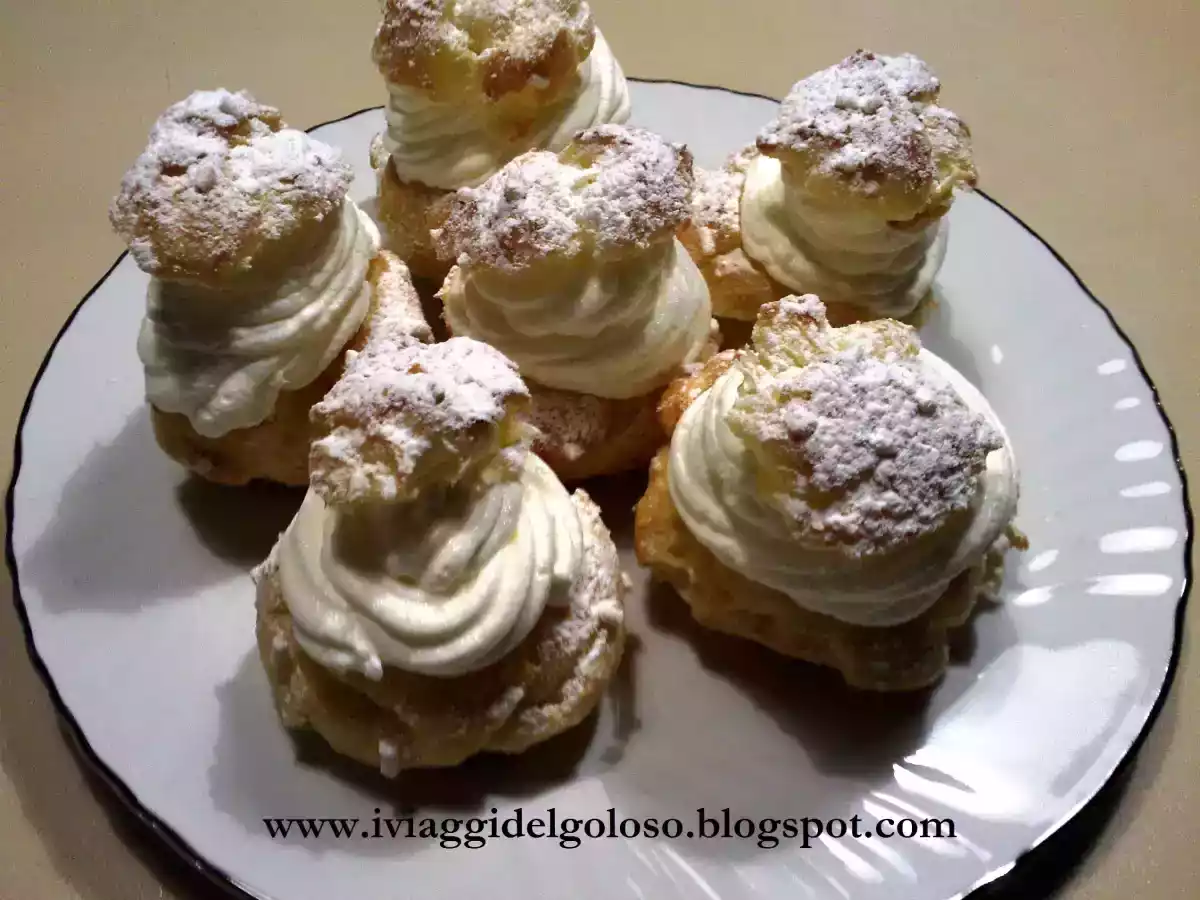 Cavolini con panna montata Dessertmedia1 ora557 Kcal Invia questa ricetta ad un amico Stampa la ricetta Contatta l'autore della Ricetta Pubblica la foto di questa ricetta Ingredienti 6 Per la pasta: (dose per 16 cavolini circa) 100 ml. di acqua 50 gr. di burro un pizzico di sale 100 gr. di farina 3 uova Per la farcitura: 500 ml. di panna da montare 5 cucchiai di zucchero zucchero in granella zucchero a velo Costo stimato: 3.31Euros€ (0.55€/Porzioni)