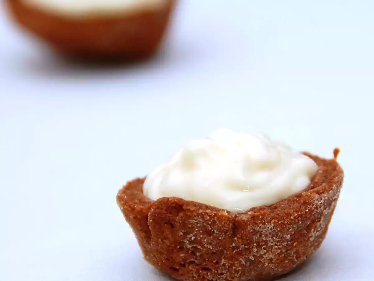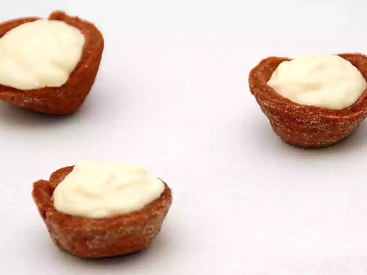 Cestini di frolla al cacao con crema al cioccolato bianco e al cocco