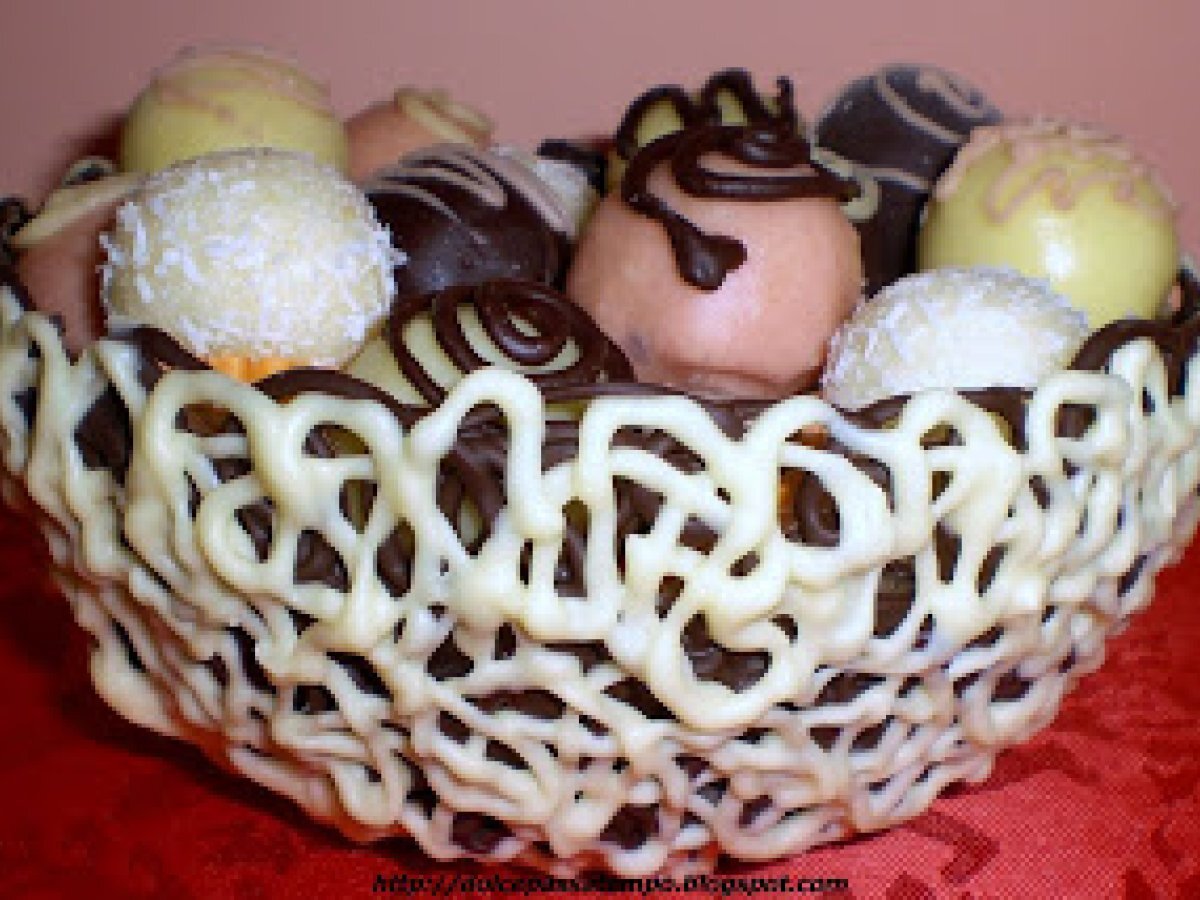 Cestino filigranato di cioccolato con truffes vota adesso PrecedenteProssimo Dessertfacile3 h 10 m Invia questa ricetta ad un amico Stampa la ricetta Contatta l'autore della Ricetta Pubblica la foto di questa ricetta Ingredienti 2 100 g cioccolato bianco 100 g cioccolato fondente 210 g marzapane 230 g burro temp ambiente 120 ml latte condensato 450 g zucchero a velo 270 g cocco 360 g cioccolato bianco 2cucchiai burro per la glassa 1cucchiaio amaretto 500 g mandorle spelate 1 albume non batuto 3-400 g zucchero a velo