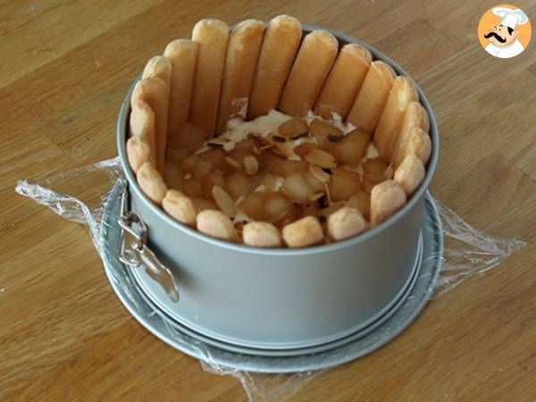 Ore ripetete il procedimento e una volta finito coprite la superficie con la pellicola e lasciate riposare la charlotte in frigo per 4 ore.