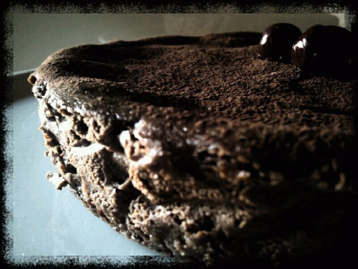Cheesecake al cioccolato con ricotta,yogurt greco e visciole