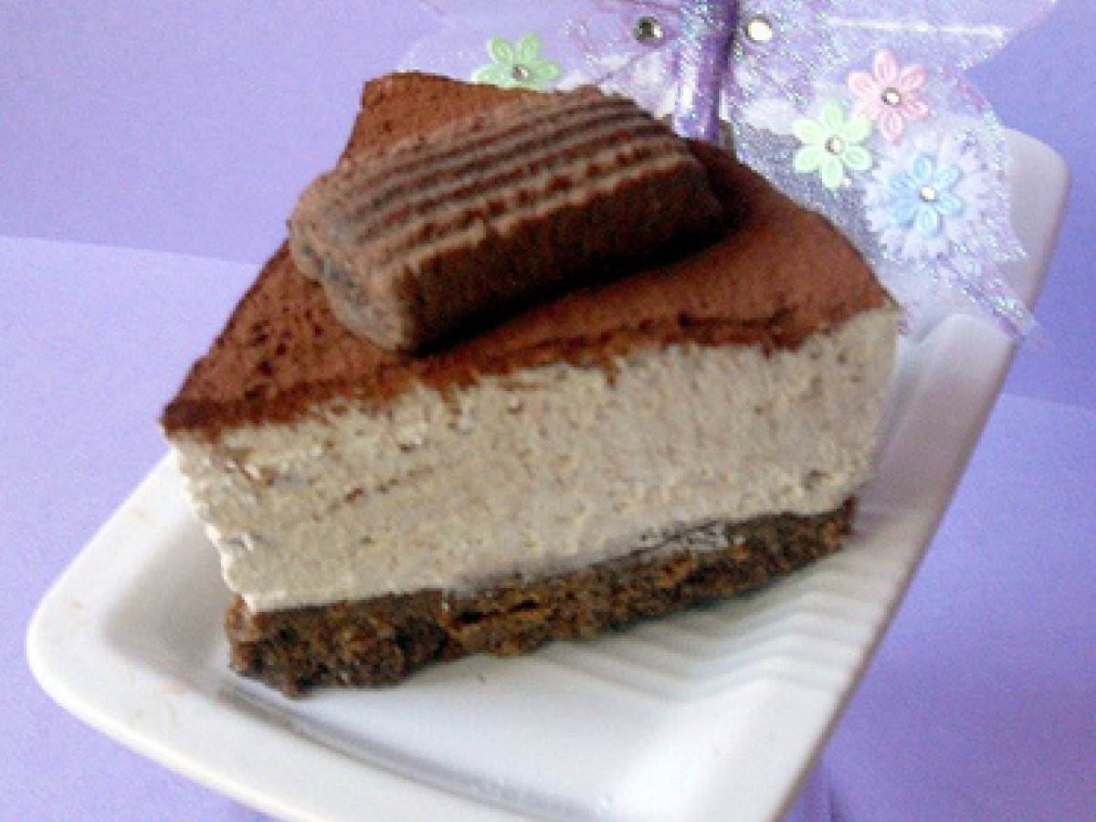 Cheesecake al mascarpone Dessertfacile20 min Invia questa ricetta ad un amico Stampa la ricetta Contatta l'autore della Ricetta Pubblica la foto di questa ricetta Ingredienti 4 Base 250 g di biscotti secchi al cioccolato 3 cucchiaia di caffe 70 g di burro 50 g di mandorle Farcia 250 g di mascarpone 200 g di panna montata 6 g di colla di pesce 30 ml di caffe 70 g di zucchero a velo Decorazione Cacao e biscotti al cioccolato oppure dei tartufi al cioccolato