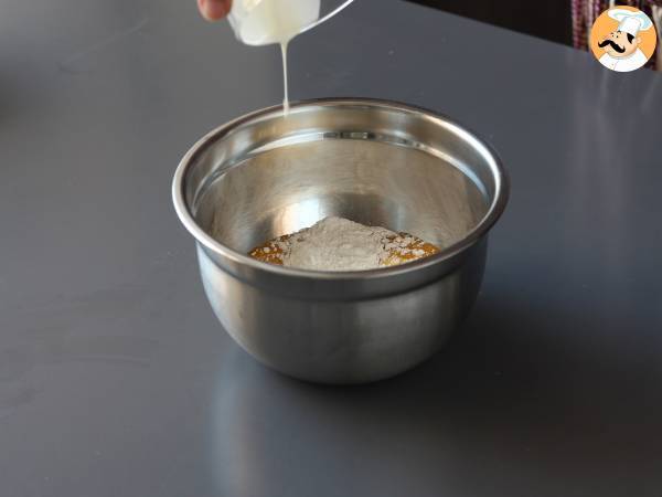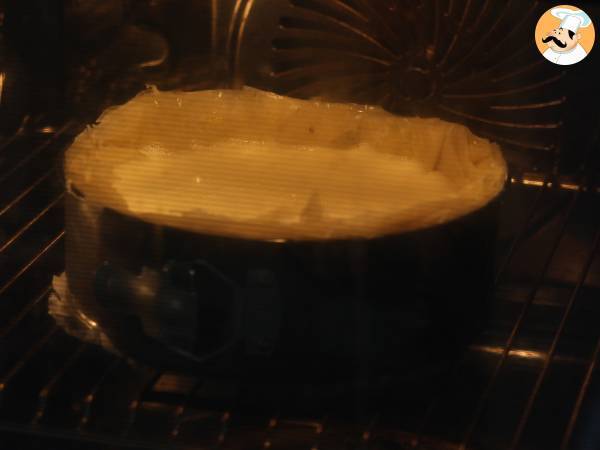 Quando il composto sarà spumoso (rimarrà un po' liquido ma è normale), versate il tutto nello stampo a cerniera