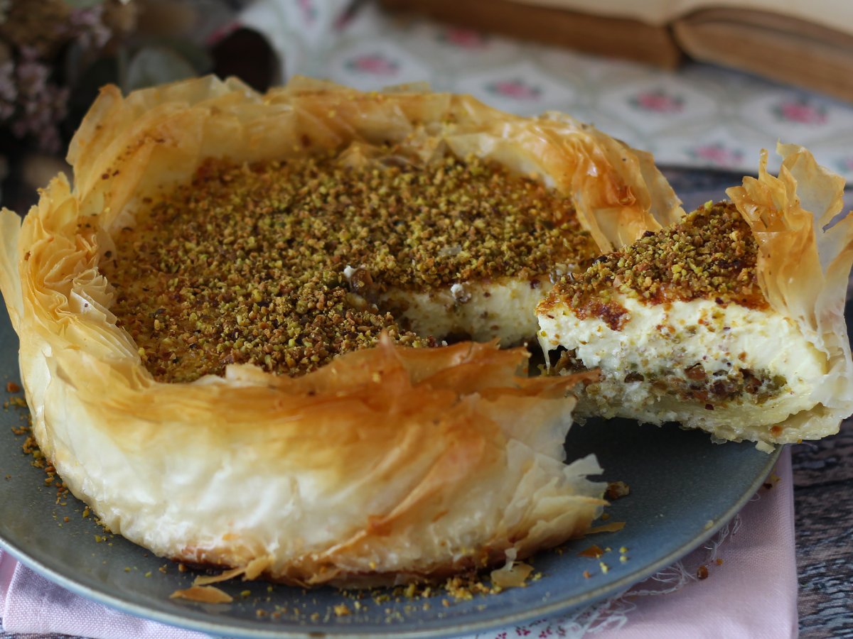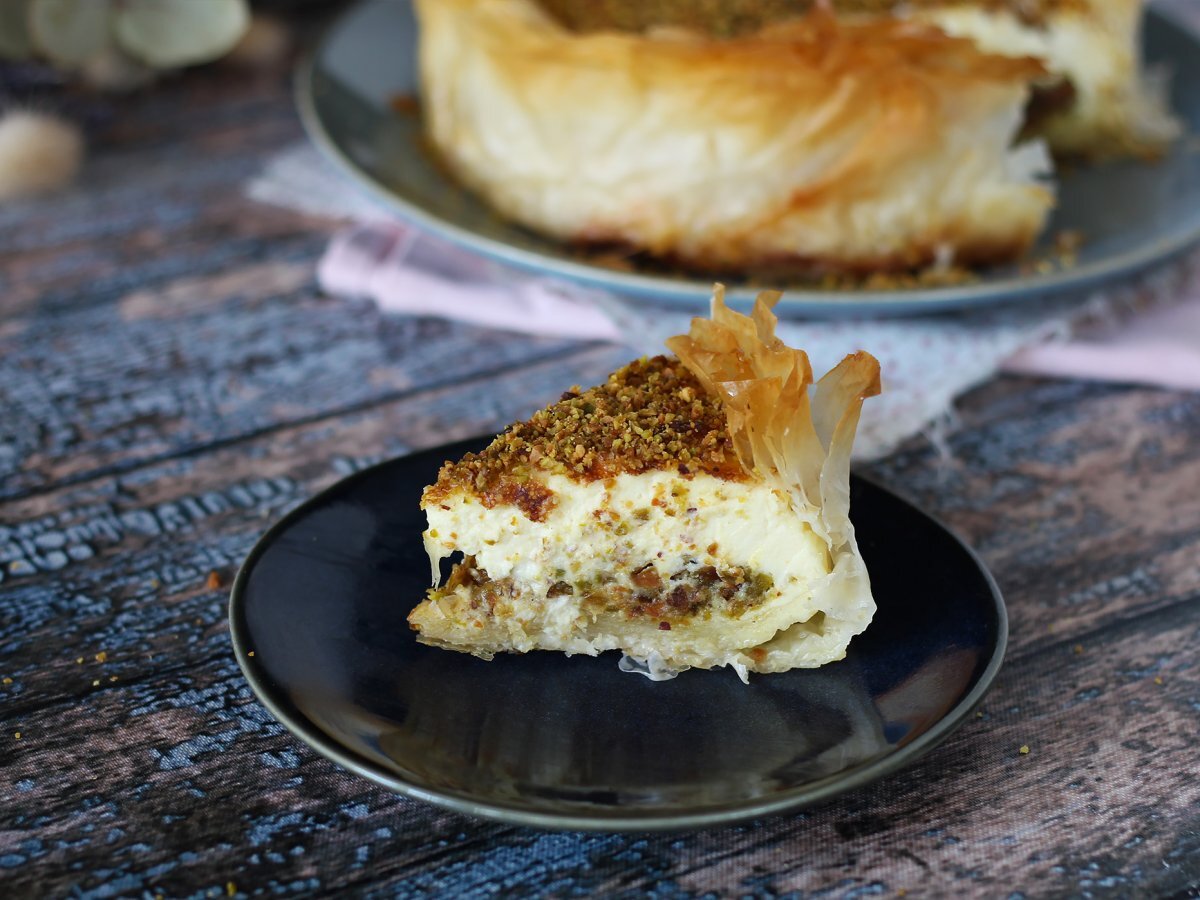 Tre stati di puro piacere, una cheesecake con cottura da acquolina in bocca e facile da preparare. Base di pasta fillo, strato croccante al pistacchio ed una classica crema con formaggio fresco: la nostra cheesecake croccante stupirà sicuramente tutti i vostri amici. Il procedimento per preparare questo goloso dolce della pasticceria internazionale è semplice ma qui in basso vi guideremo passo a passo per avere un risultato perfetto. Scriveteci nei commenti se vi è piaciuta!