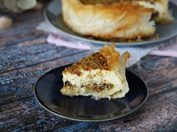 Lasciate raffreddare il dolce, poi mettetelo in frigorifero almeno 2 ore prima di mangiarla. La cheesecake croccante con pasta fillo è pronta!