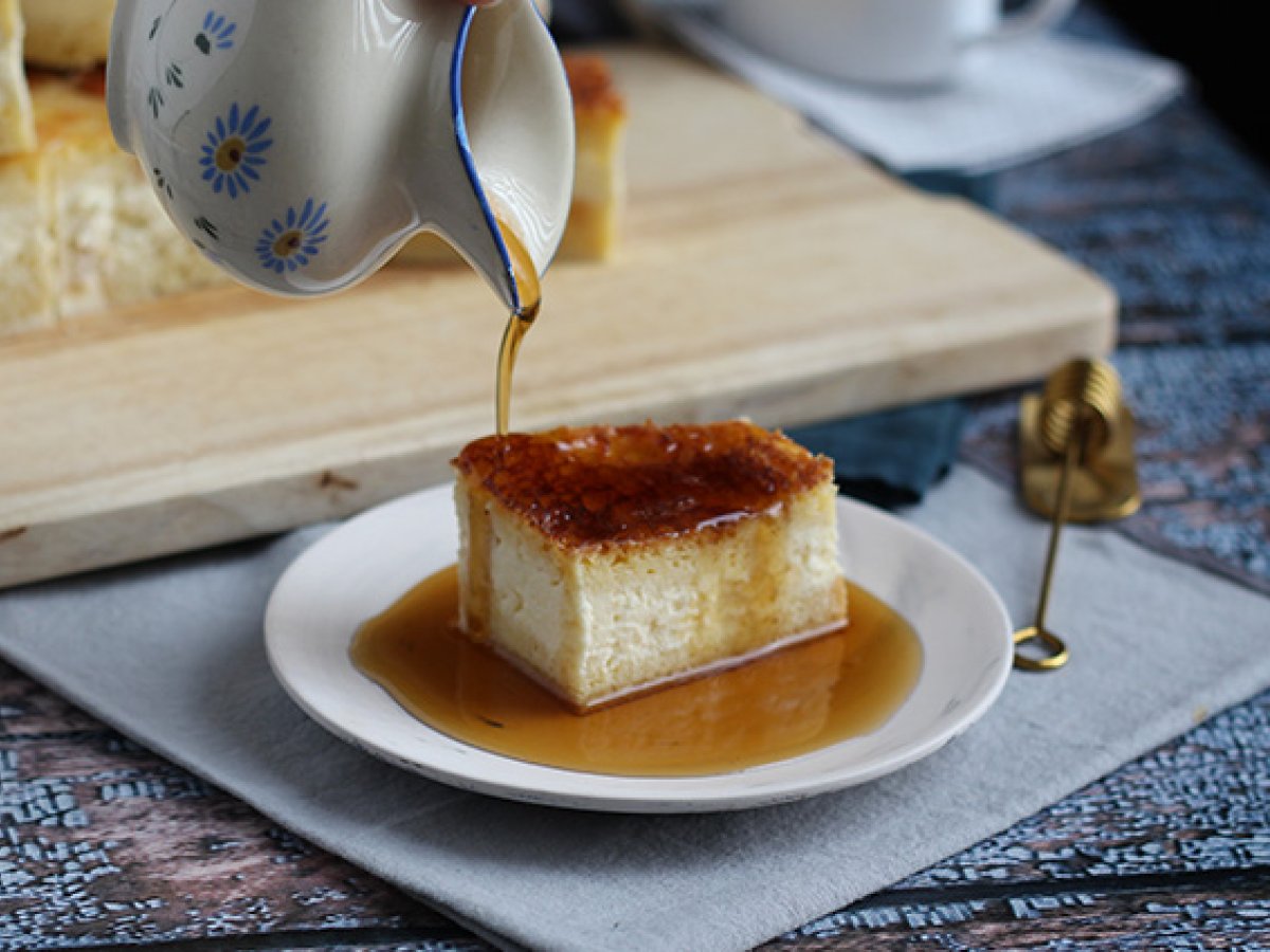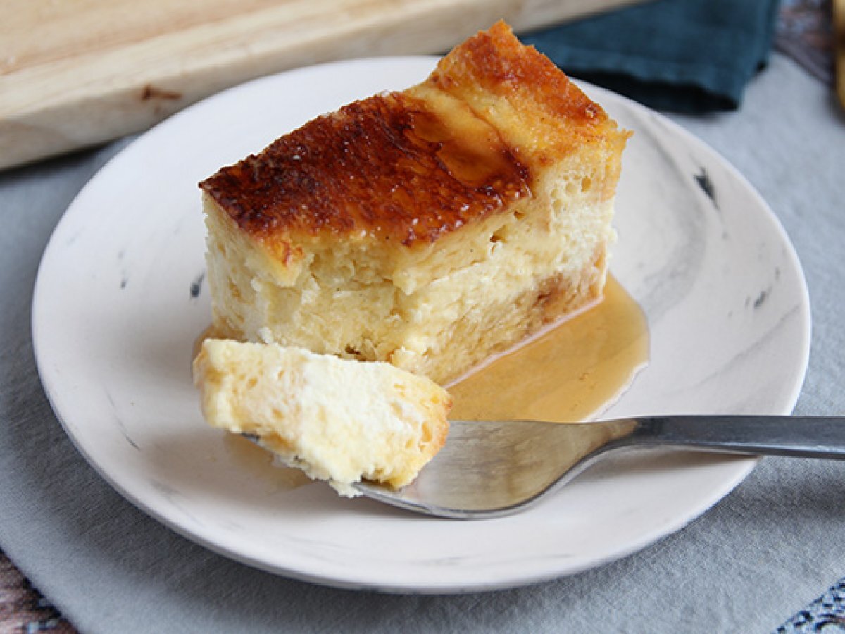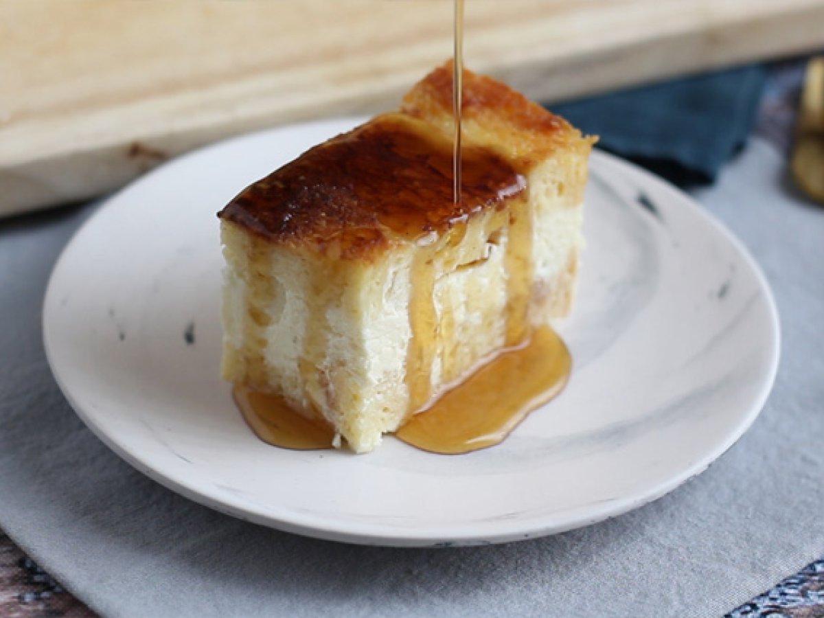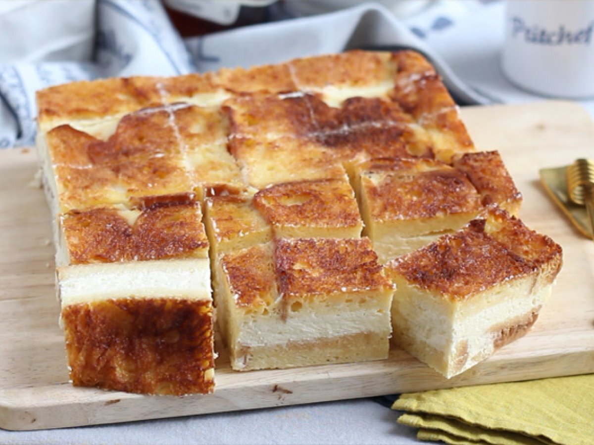 Poi ricoprite con un altro strato di fette di pan brioche inzuppate e infornate a 140°C per 65 minuti (il forno deve essere preriscaldato)
