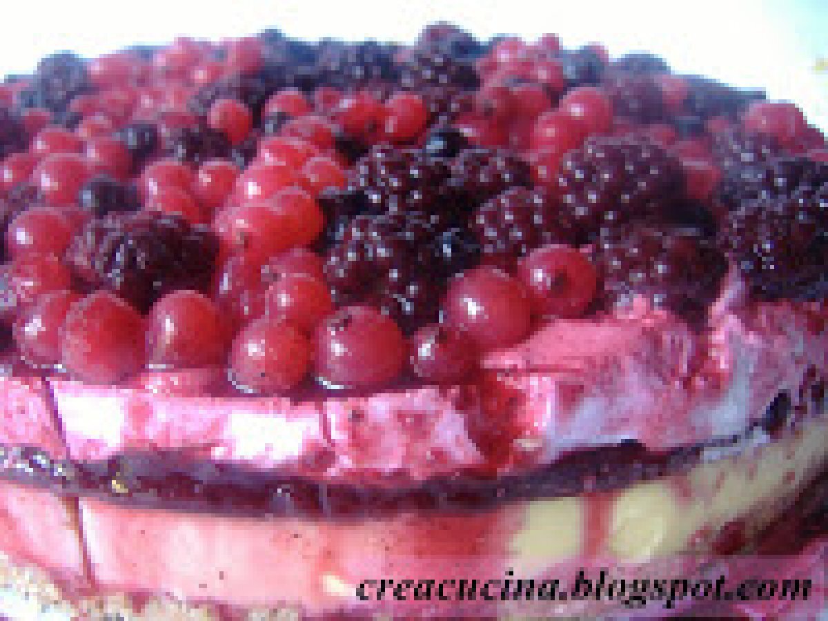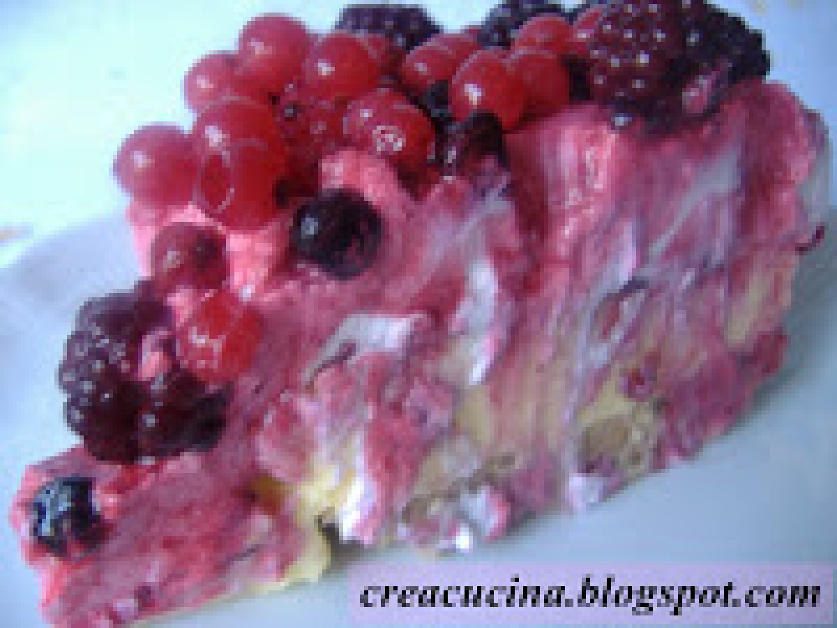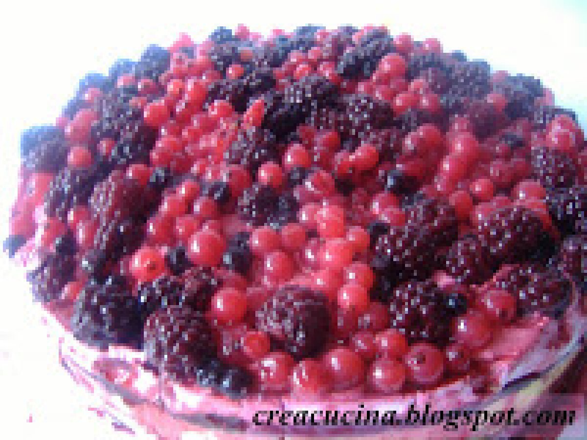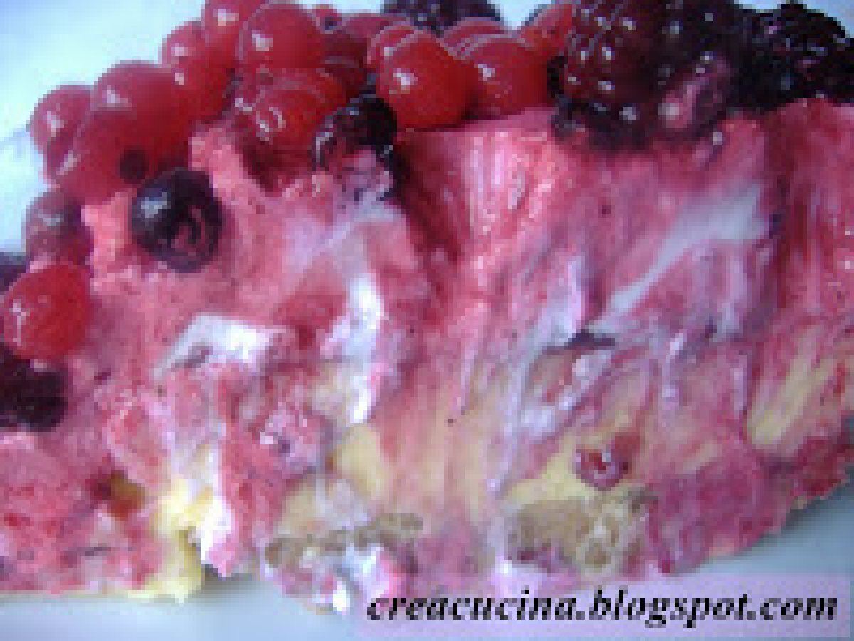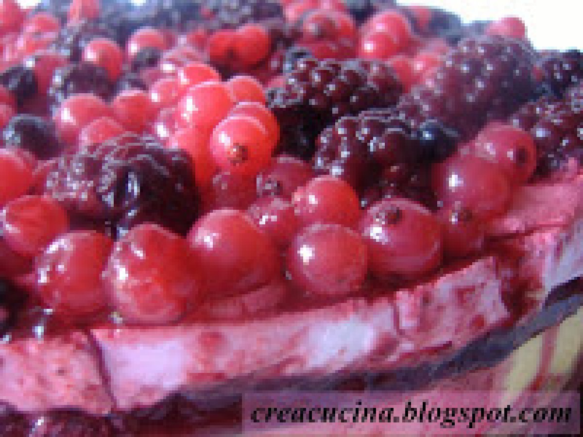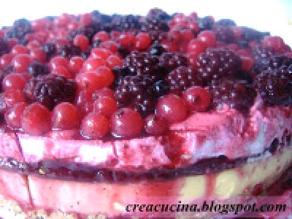 Cheesecake con panna e frutti di bosco PrecedenteProssimo Dessertfacile4 h 10 m Invia questa ricetta ad un amico Stampa la ricetta Contatta l'autore della Ricetta Pubblica la foto di questa ricetta Ingredienti 4 Per la base: 300 g di biscotti secchi 150 g di burro Per la crema: 4 tuorli 200 g di zucchero 60 g di farina 1/2 litro di latte 2 fogli di colla di pesce 250 g di mascarpone 2 cucchiai di rum 1 busta di Dolceneve Cameo Marmellata ai frutti di bosco Frutti di bosco misti